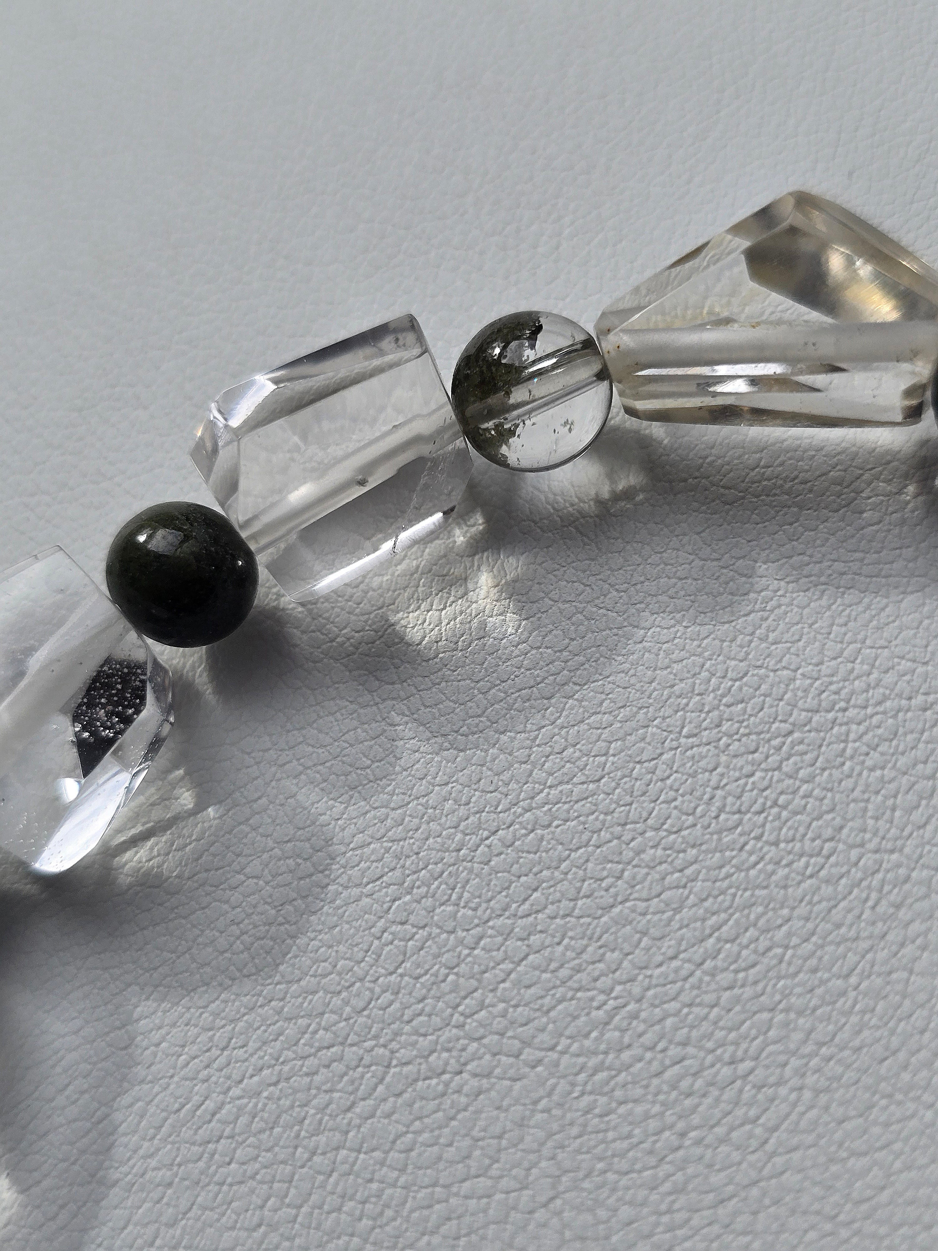 潜在能力を引き出し、困難を克服して成長をうながす石と云われる。 また、浄化力が強く、深い瞑想へいざなうパワーストーンとしてヒーリングの世界でも人気の水晶です。