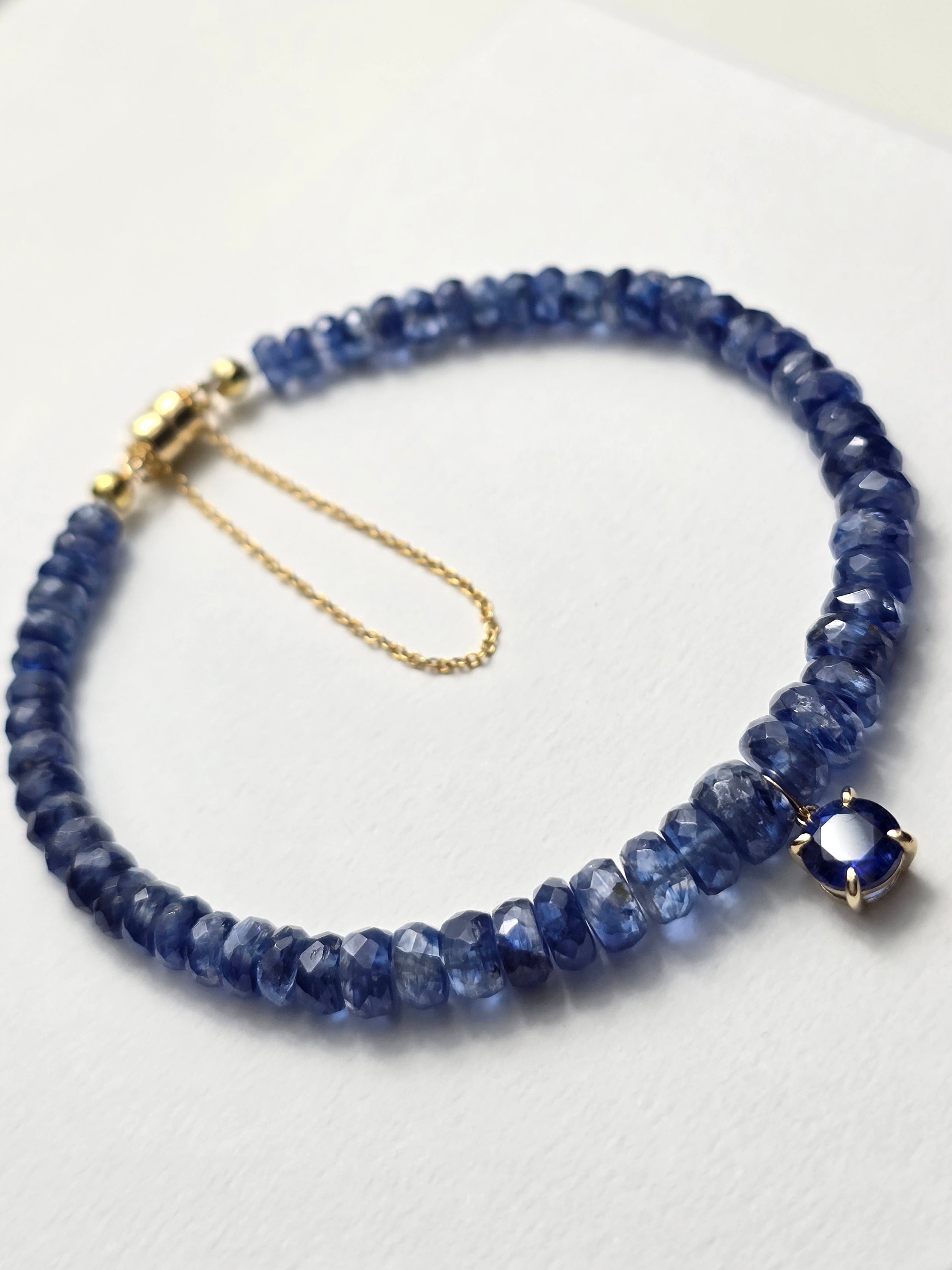 深く澄んだブルーが印象的な、すべてネパール産の宝石質カイヤナイトのみを贅沢に使用したブレスレットです。
