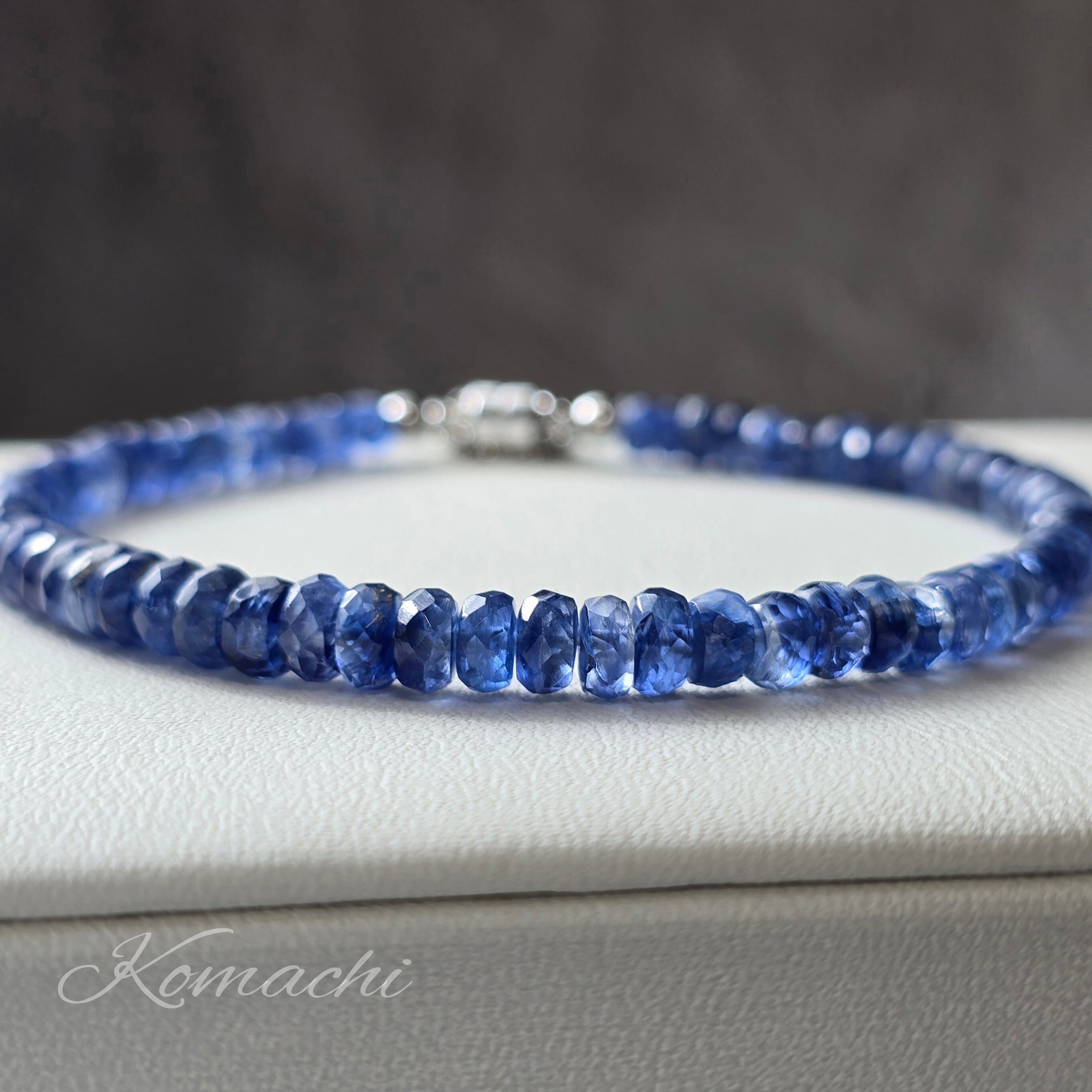 深く澄んだブルーが印象的な、すべてネパール産の宝石質カイヤナイトのみを贅沢に使用したブレスレットです。