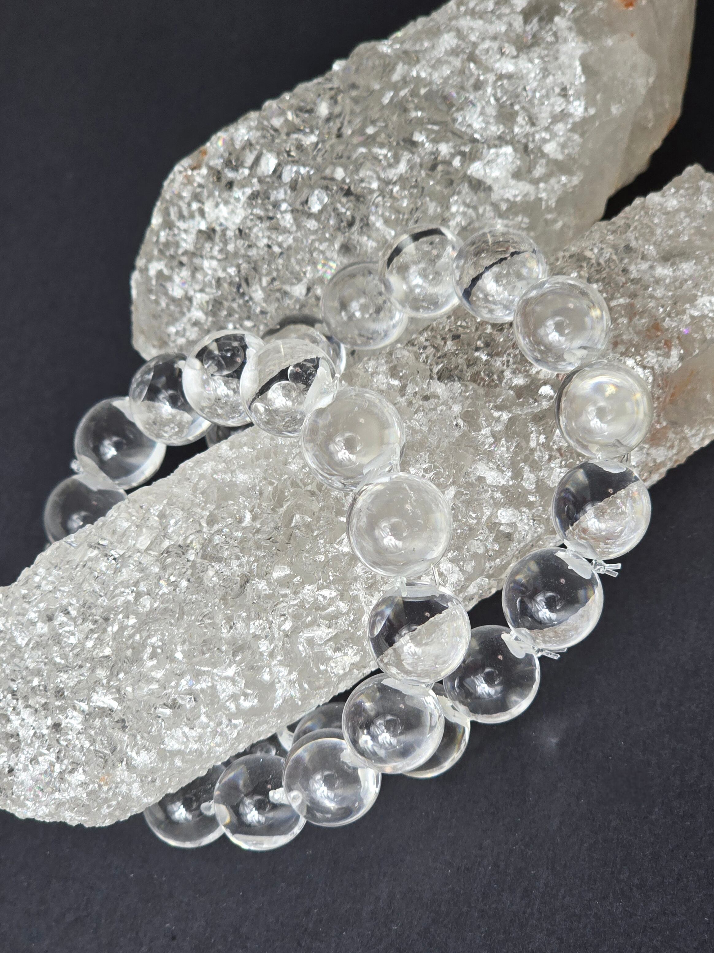 希少 ブラジル産天然水晶 サイドドリルブレスレット 12.5mm 内径約16.5cm